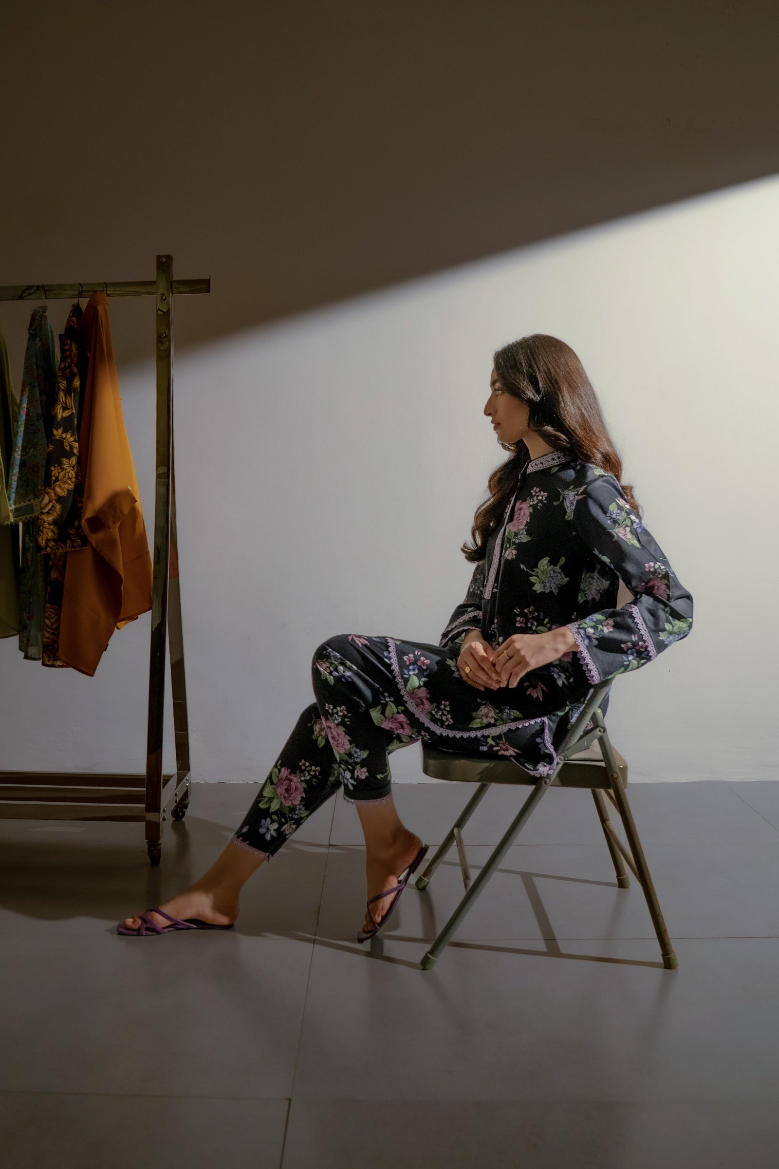 This black kurta paired with sleek shalwar blends comfort with contemporary style. It is a perfect piece to add your wardrobe this season