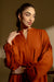 This rust colored loose cut kurta paired with tulip is smart yet comfy. Perfect for this season.