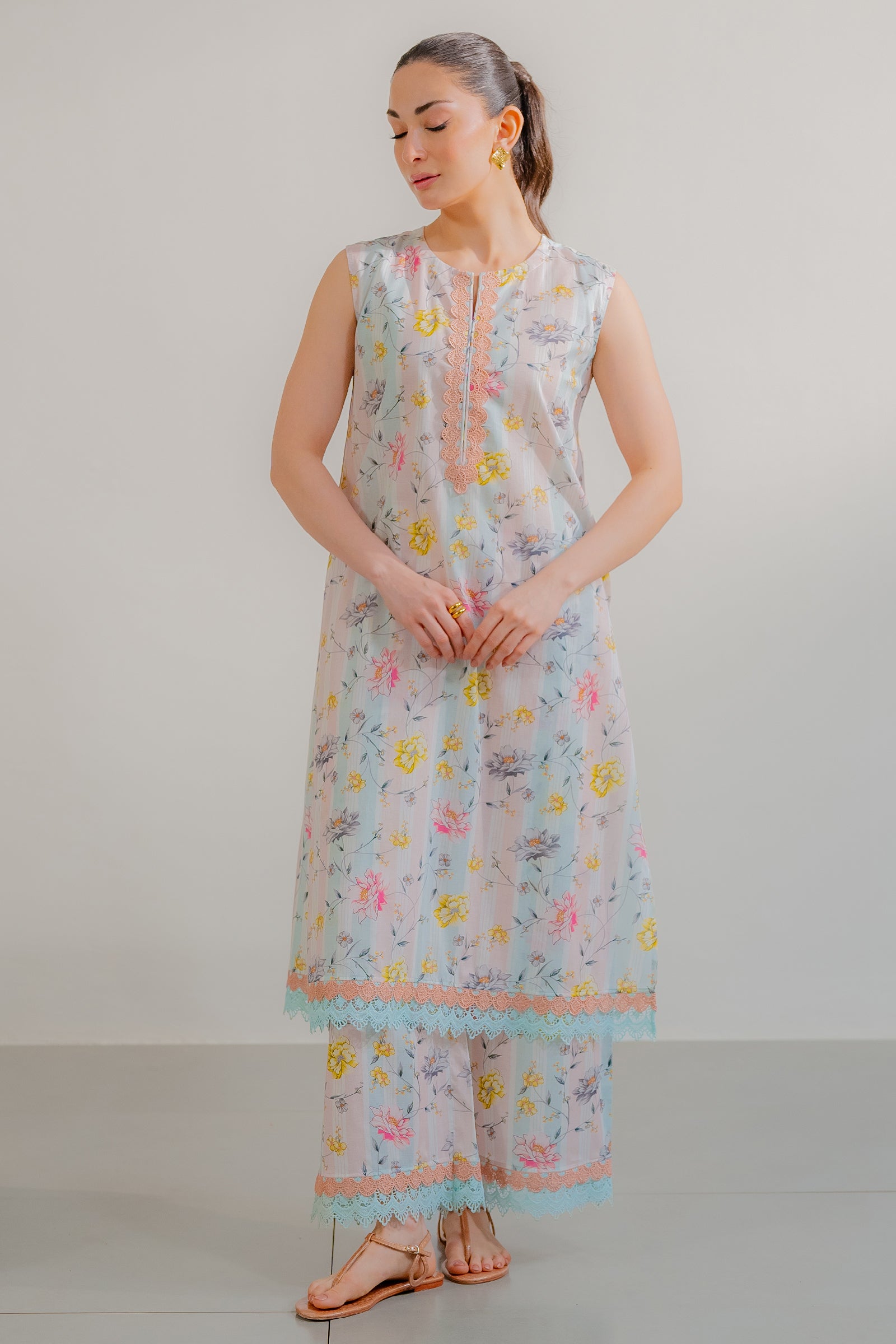 Add a touch of grace with this light pink digital print two-piece unstitched. Perfect for effortless daytime elegance.