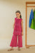 This magenta colored sleeveless kurta with hand screen print and stitch action and matching pants is perfect outfit for a cheerful look.