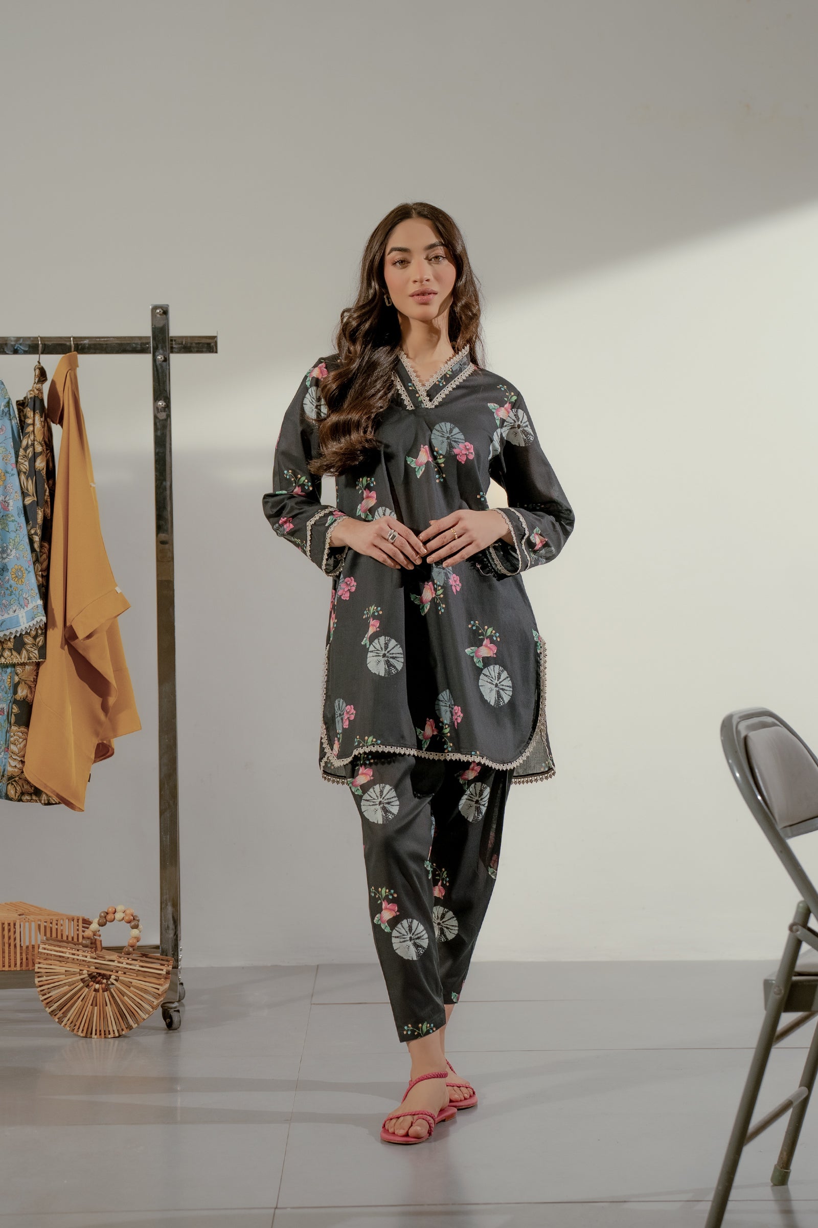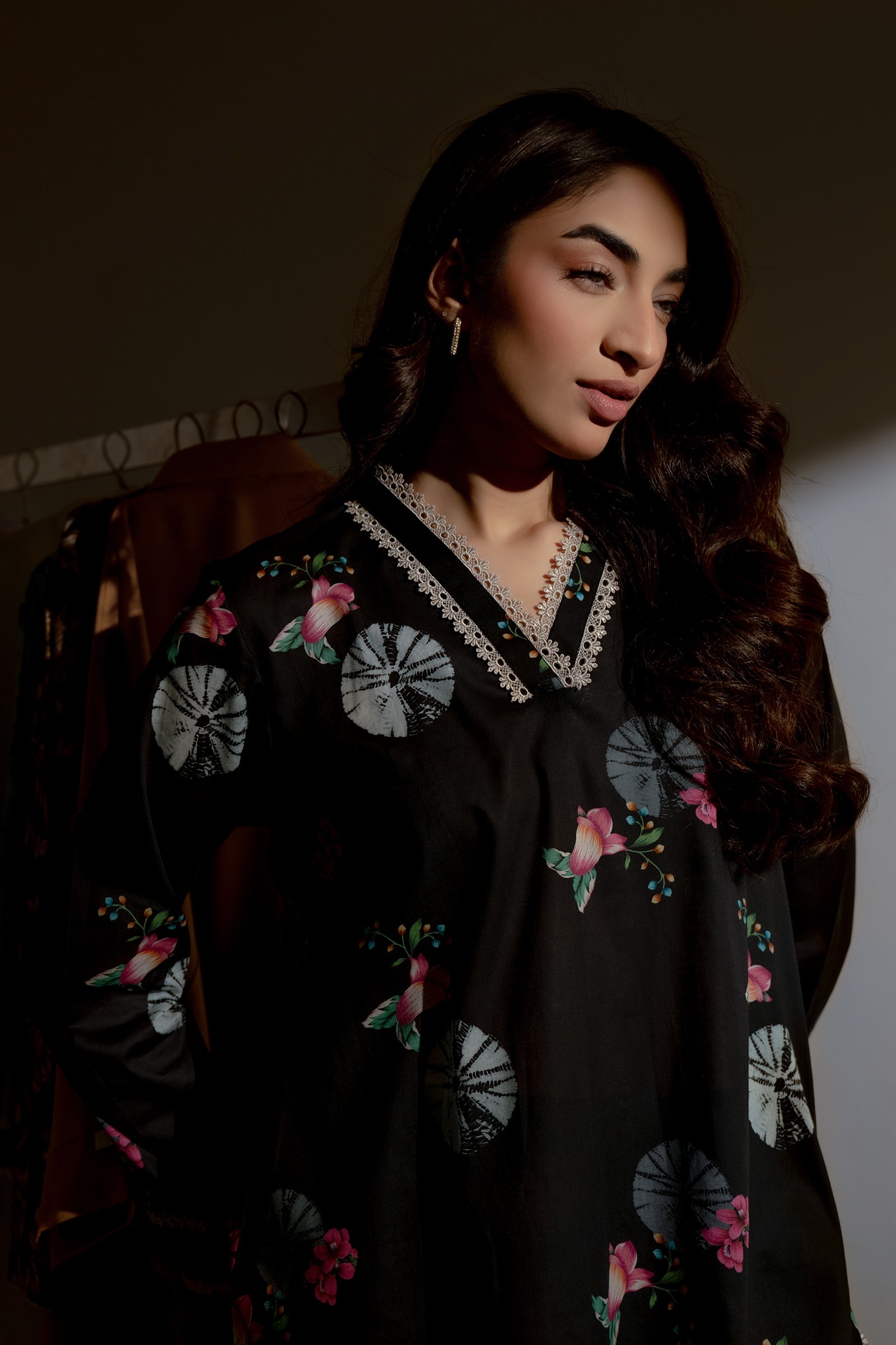 This black colored digital print kurta and sleek shalwar is designed to offer both elegance and ease, making it a perfect addition to your collection for various occasions.