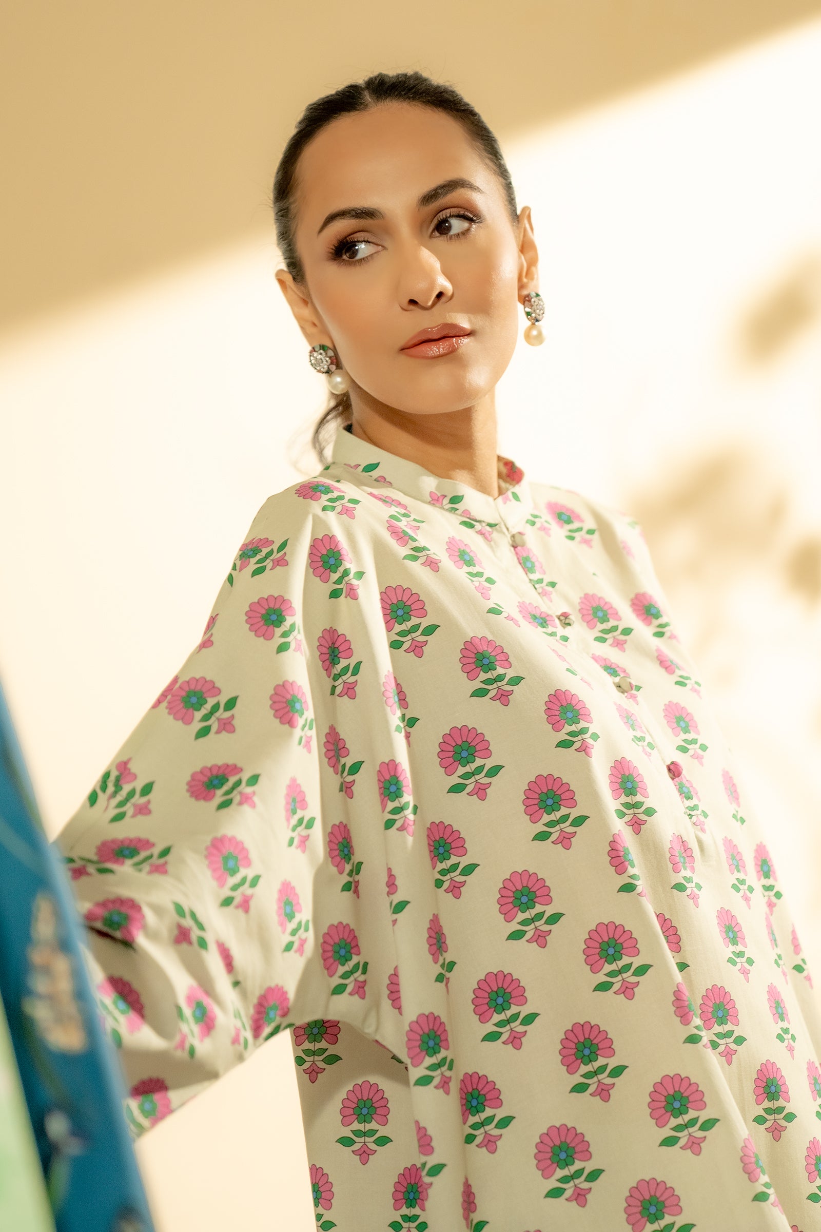 This mint colored loose casual kurta with sleek shalwar with digital print is a must have