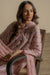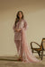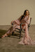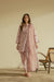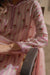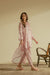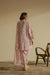 Soft pink striped three-piece set with delicate floral motifs, featuring a relaxed kurta, sleek shalwar, and a flowy dupatta for an effortlessly graceful look.