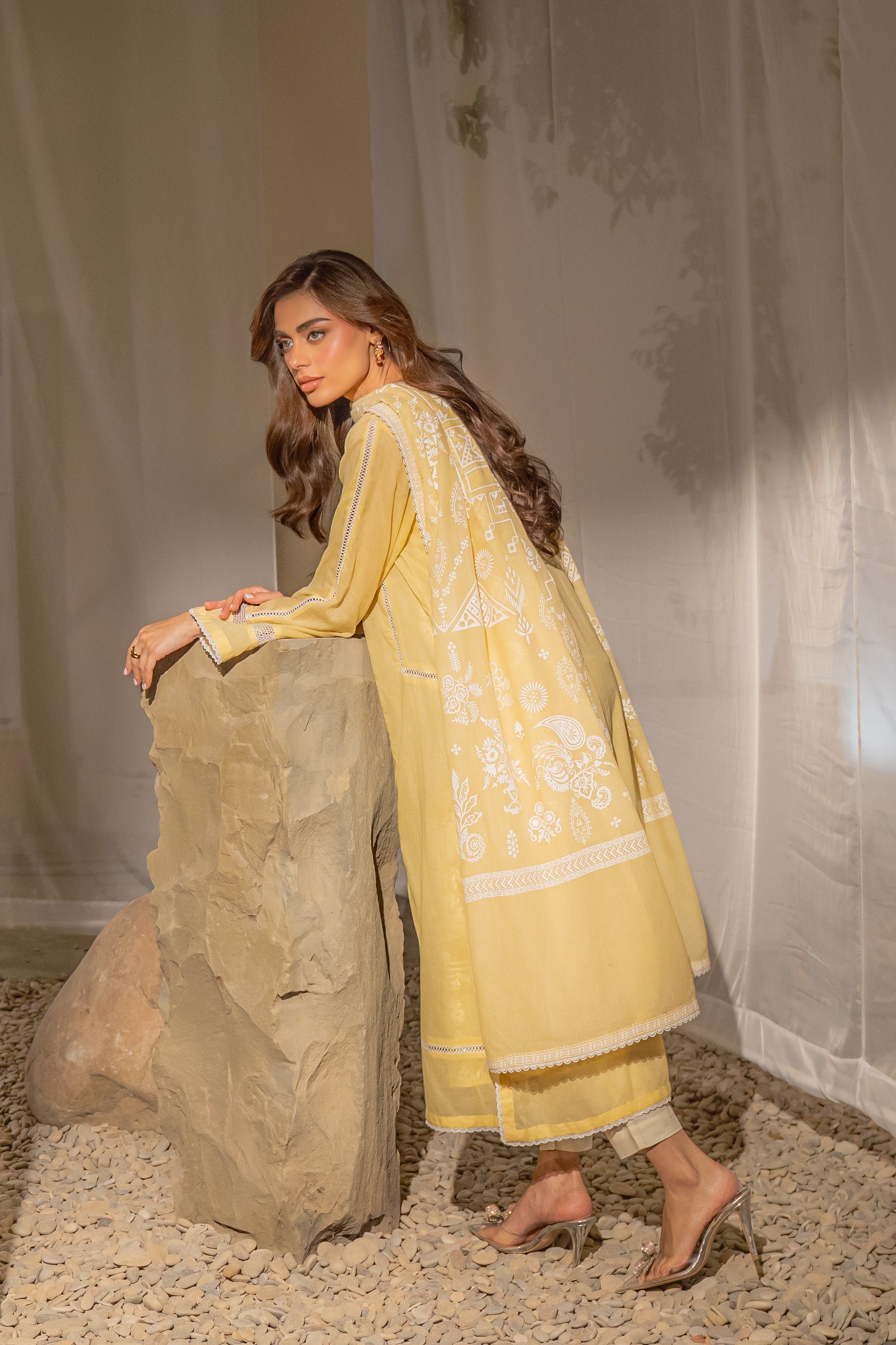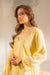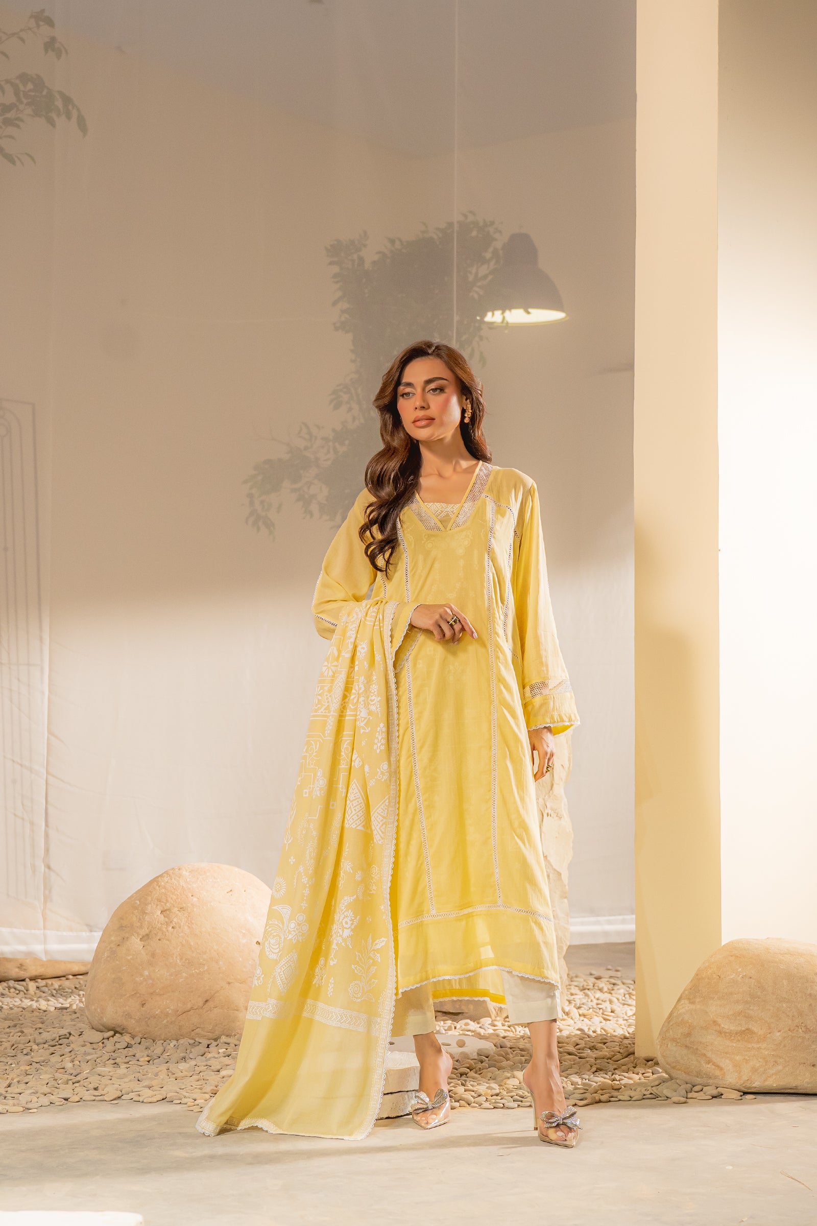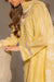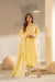 This yellow A-line cut kurta and dupatta with puff print and pants is elegant, and perfect for a fresh daytime look.