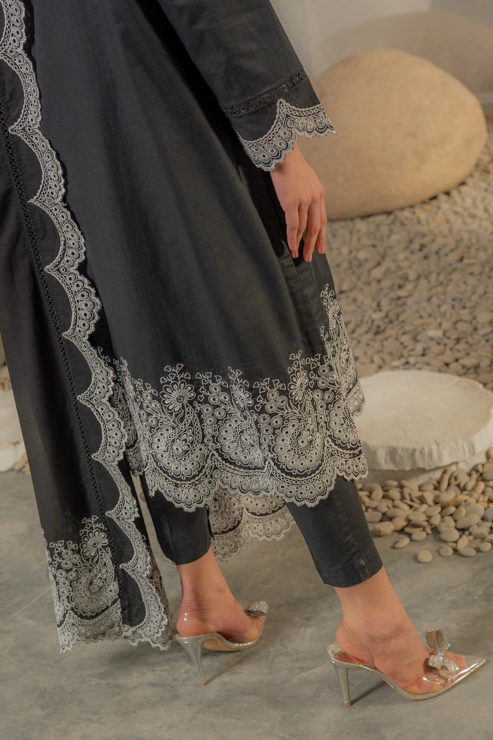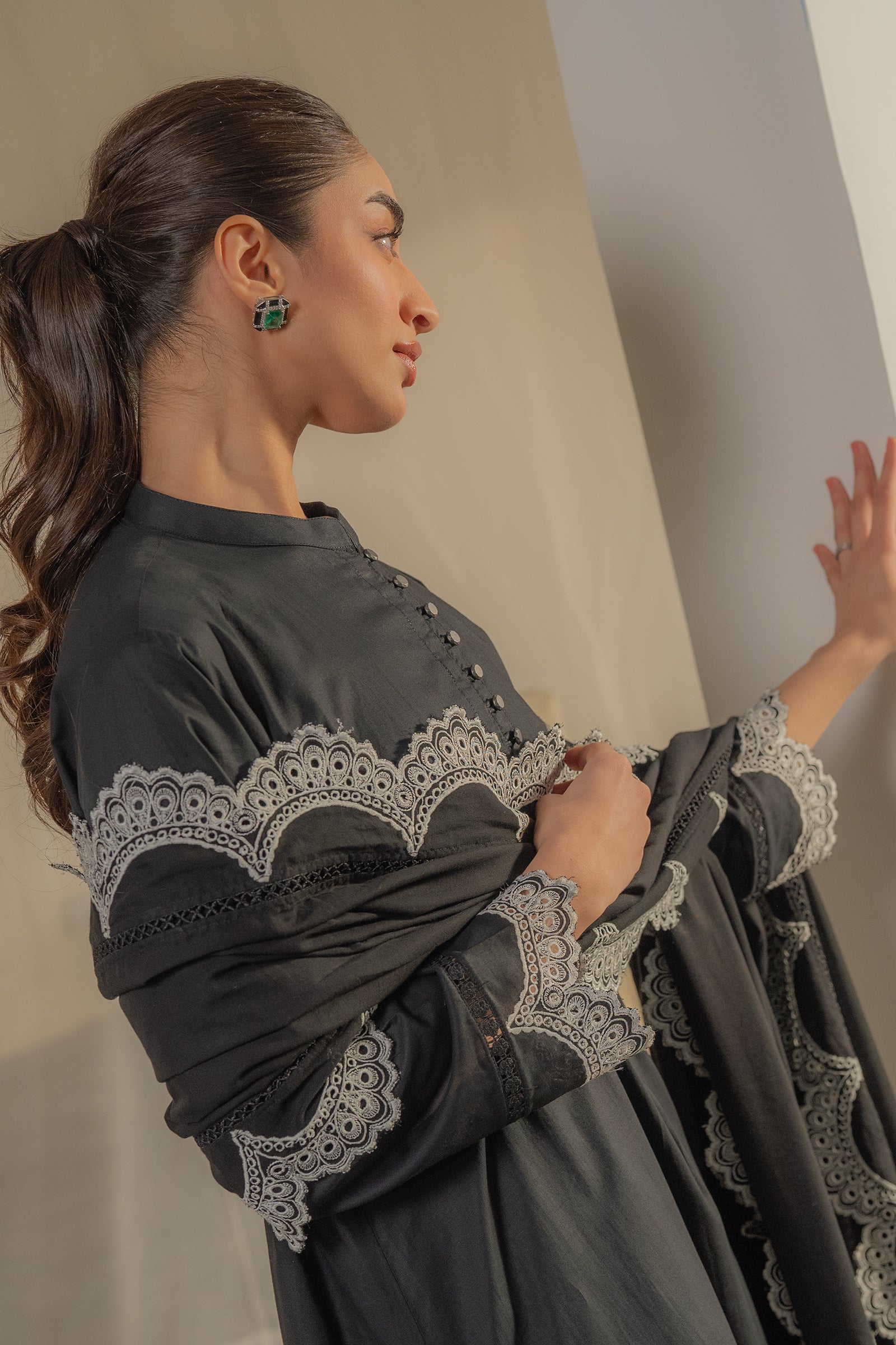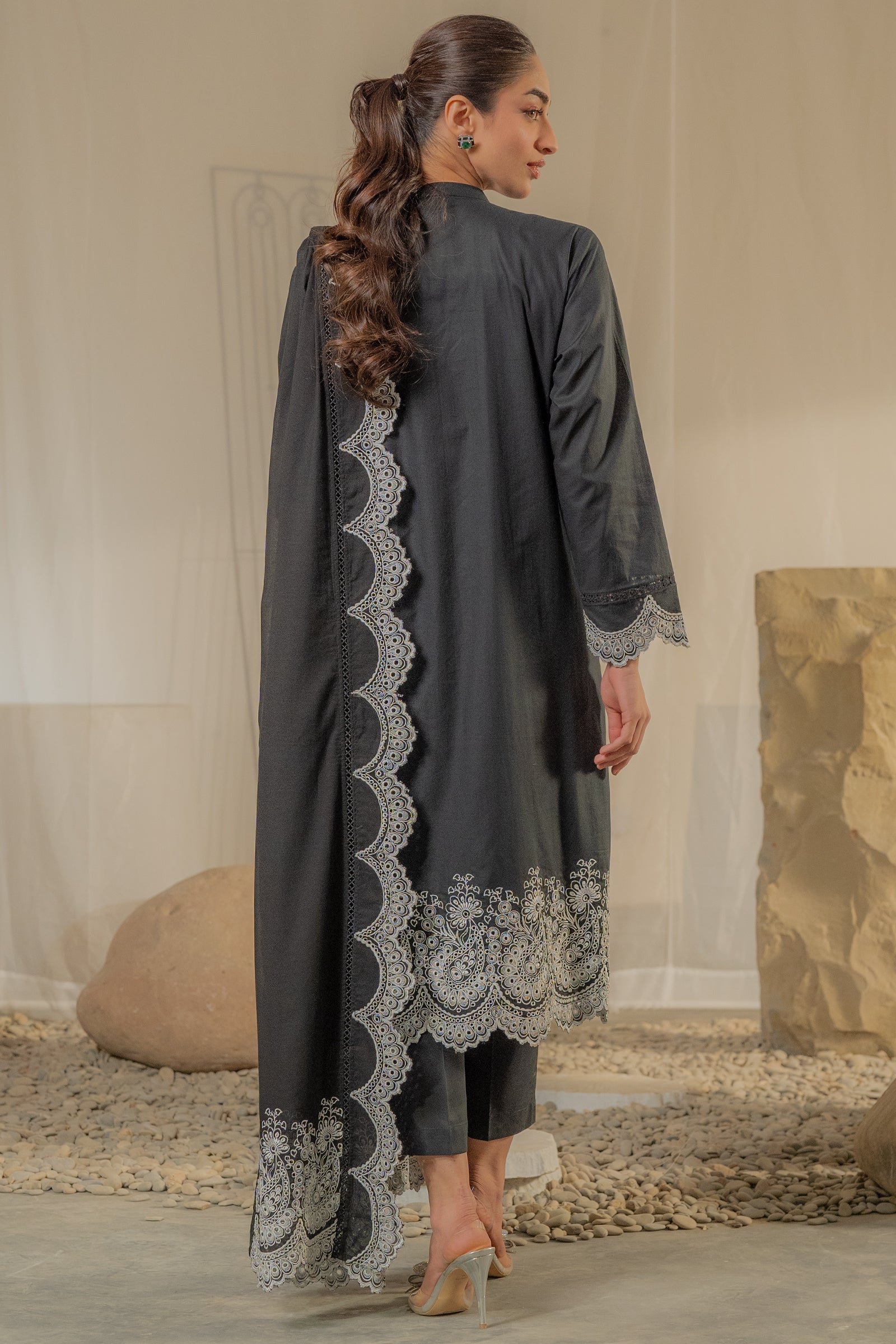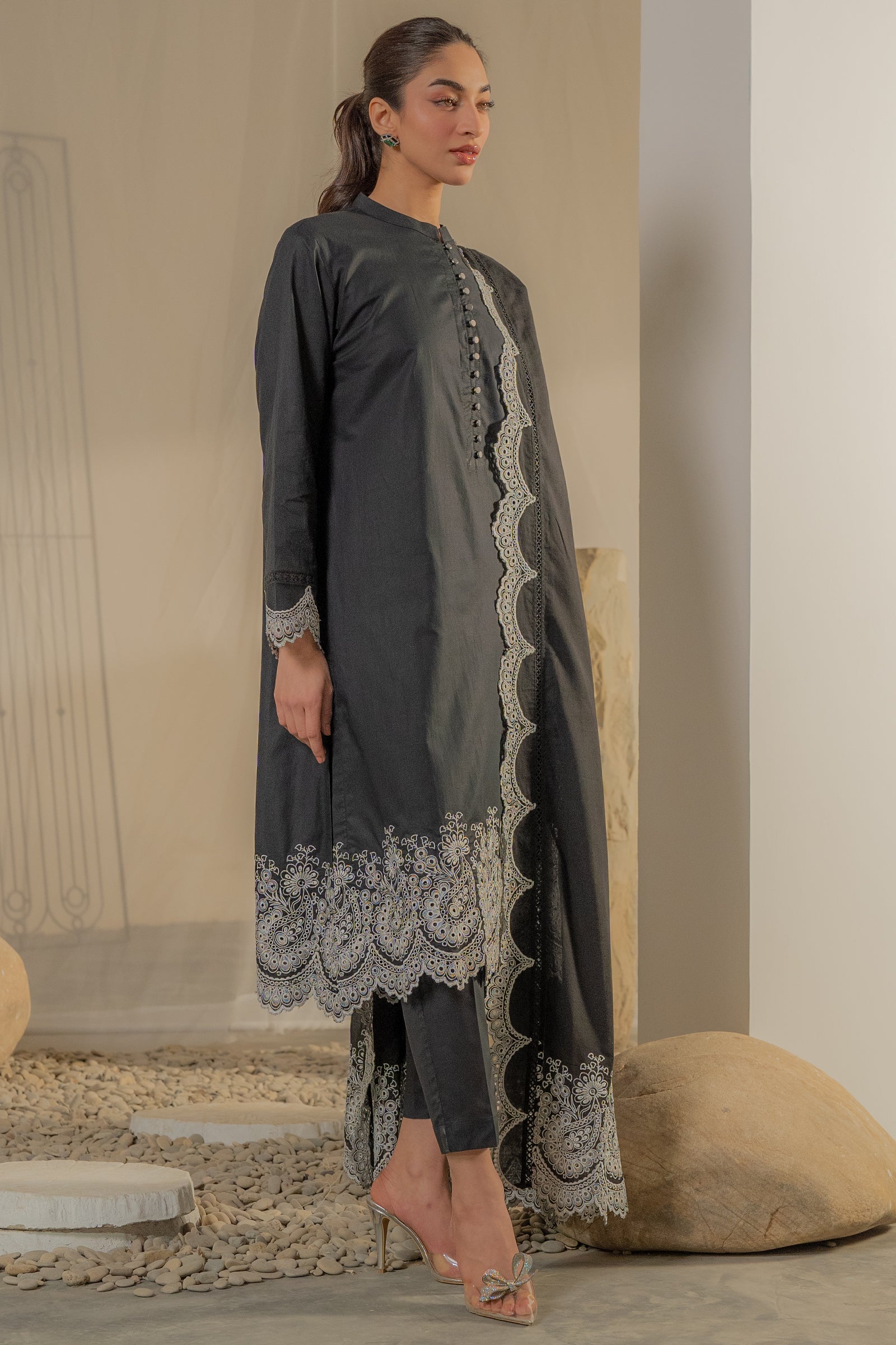 This timeless black kurta with contrast embroidery and an elegant dupatta is add elegance this festive season.