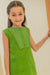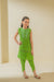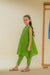 Fresh and playful green sleeveless kurta set with hand screen print and lace detailing and matching pants — perfect for everyday.