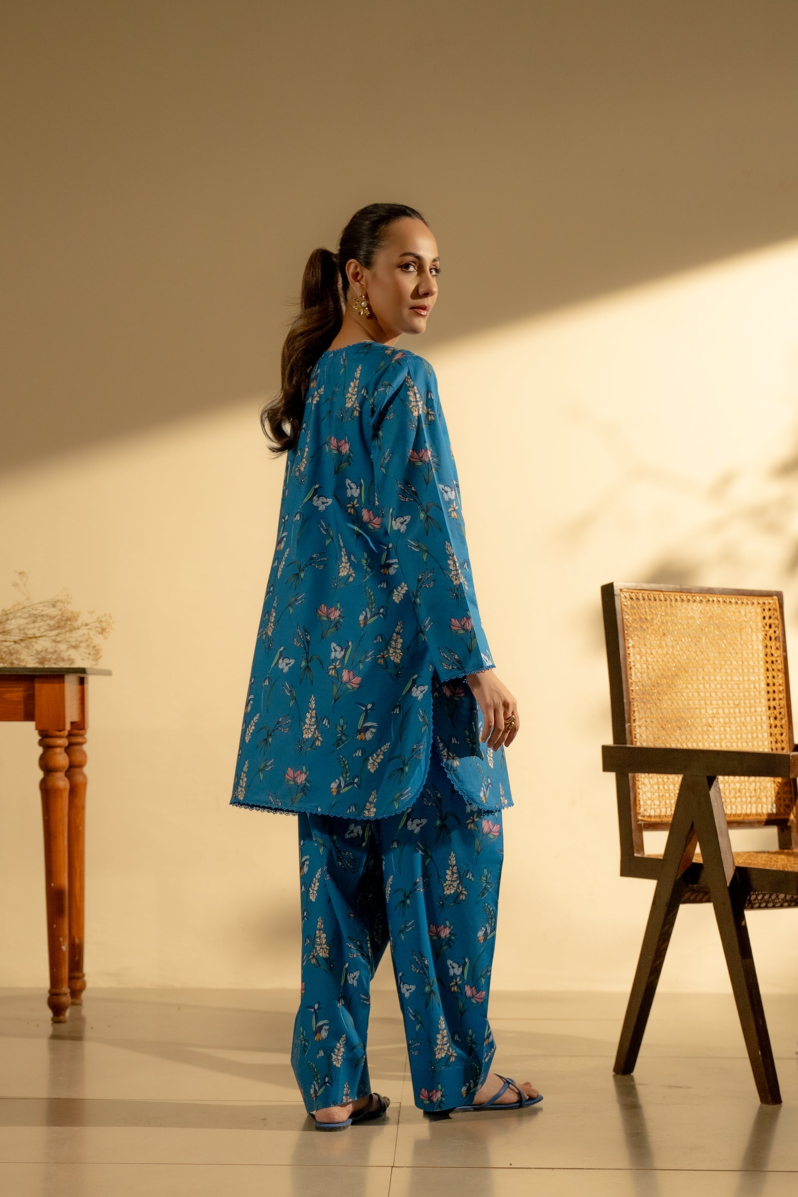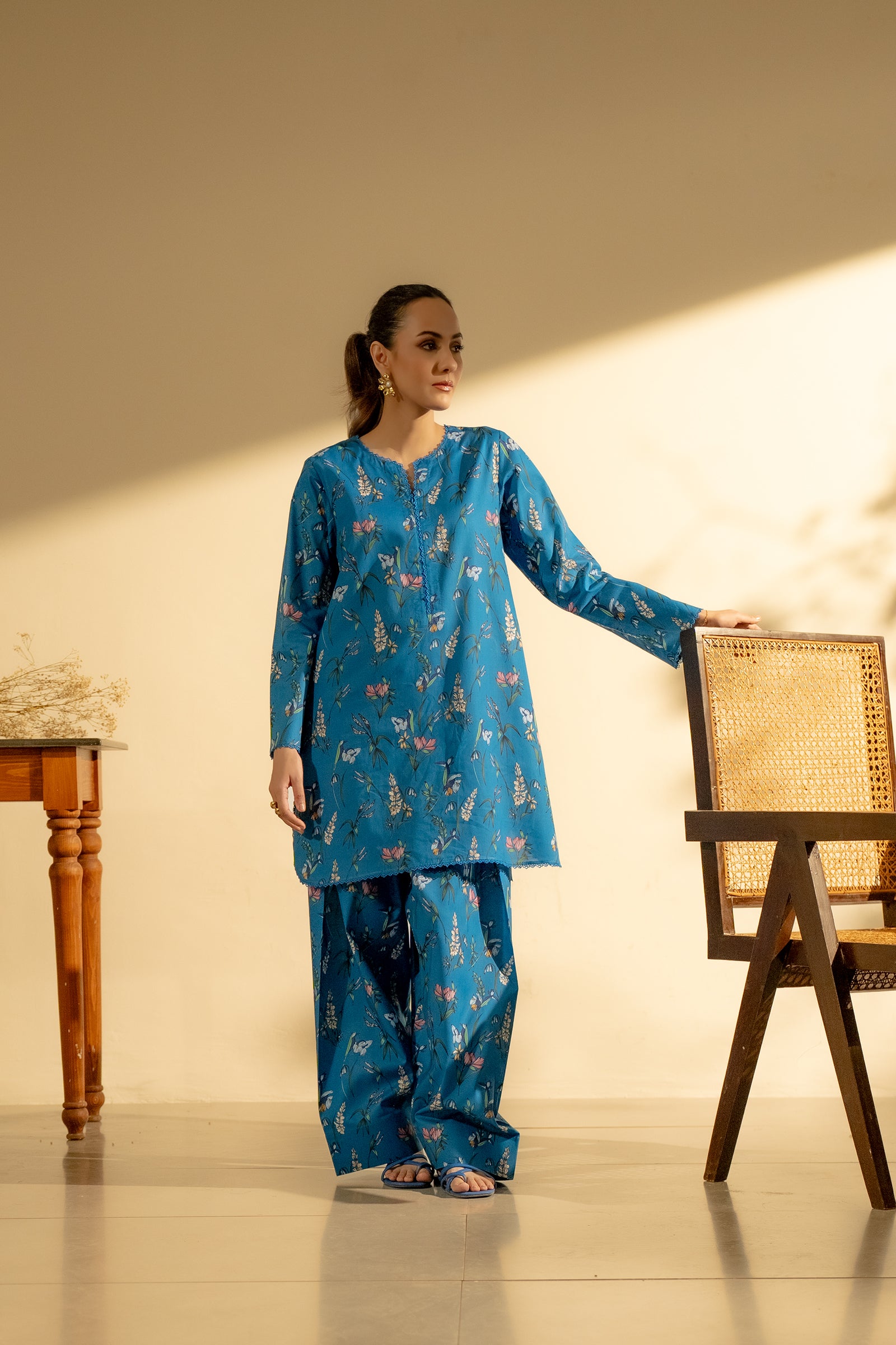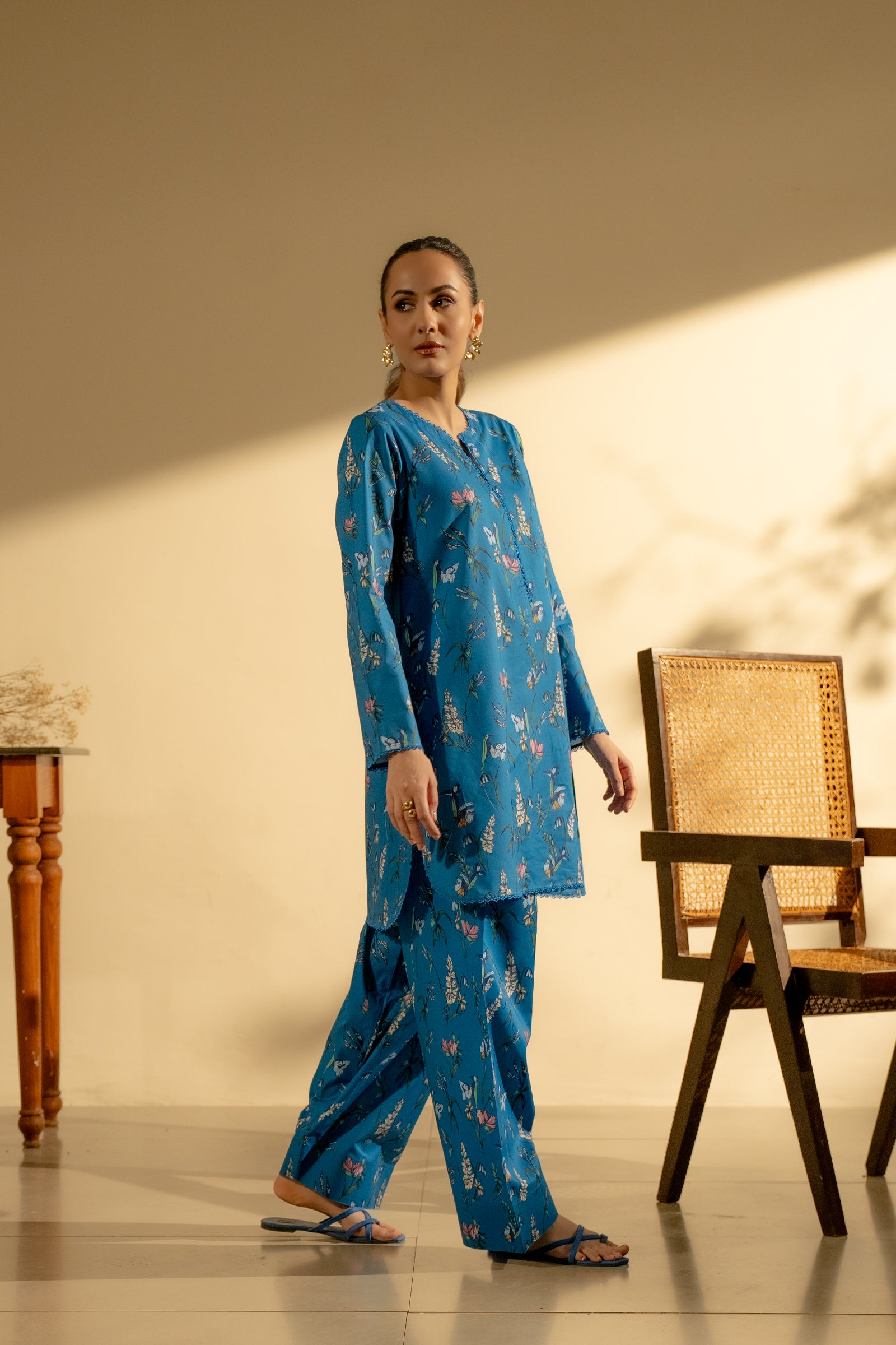 Embrace this fall with this smart and chic digital print kurta paired with farshi shalwar