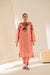Embrace this fall season with this elegant peach colored digital print long kurta paired with pants